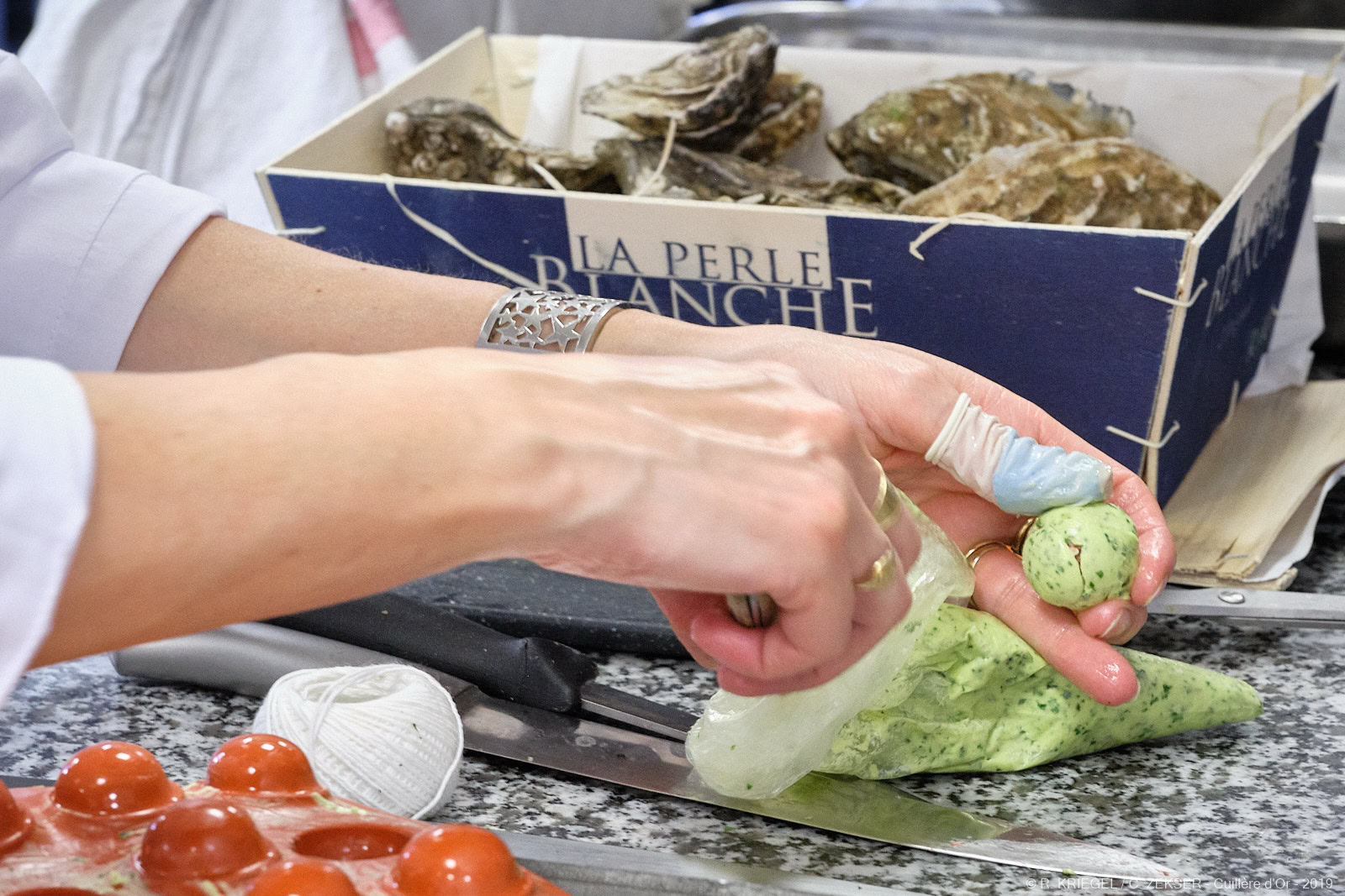 Chaque candidate dispose de 3h00 pour réaliser un plat identique dressés sur assiettes pour 7 personnes, sur le thème « INFINIMENT MER ».