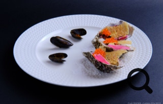 · Pour l’Entrée : Huîtres et moules Bio, pommes, rose
