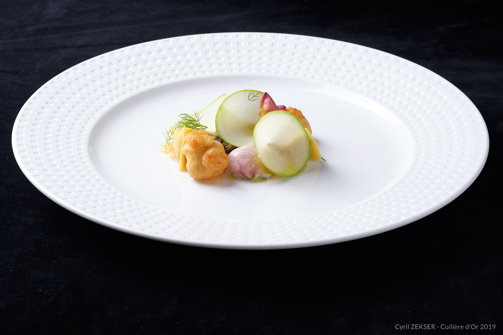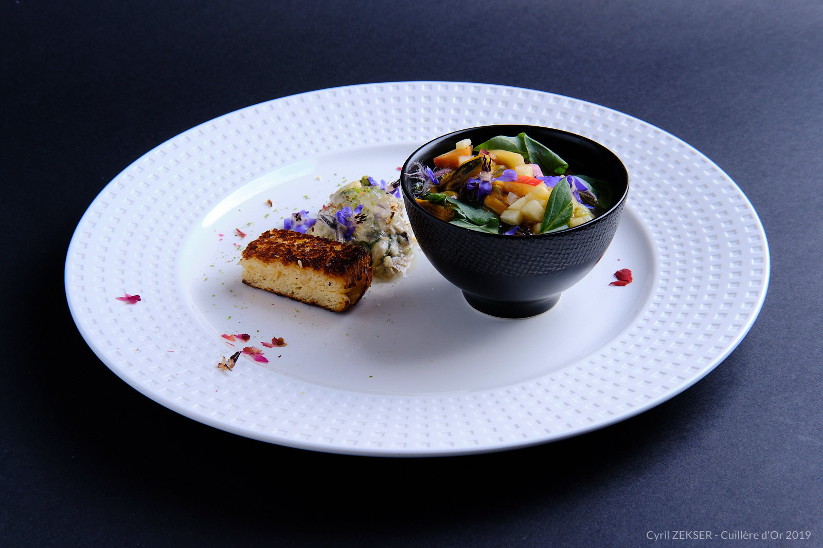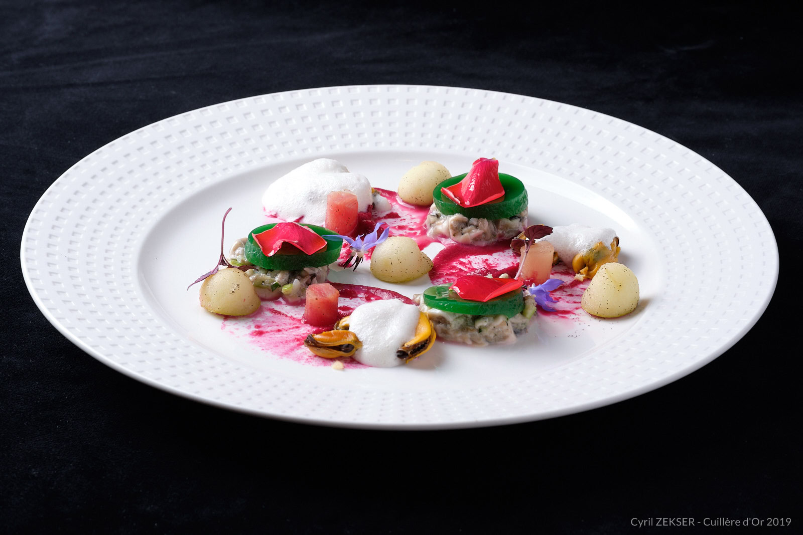 Chaque candidate dispose de 3h00 pour réaliser un plat identique dressés sur assiettes pour 7 personnes, sur le thème « INFINIMENT MER ».
