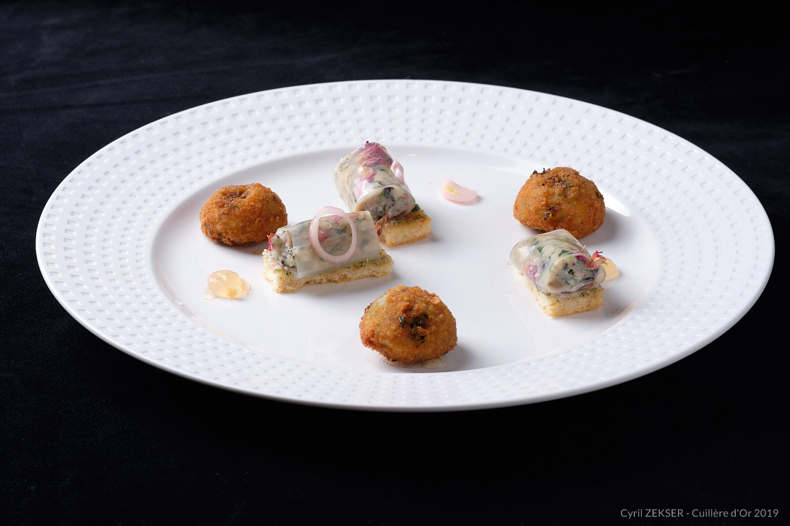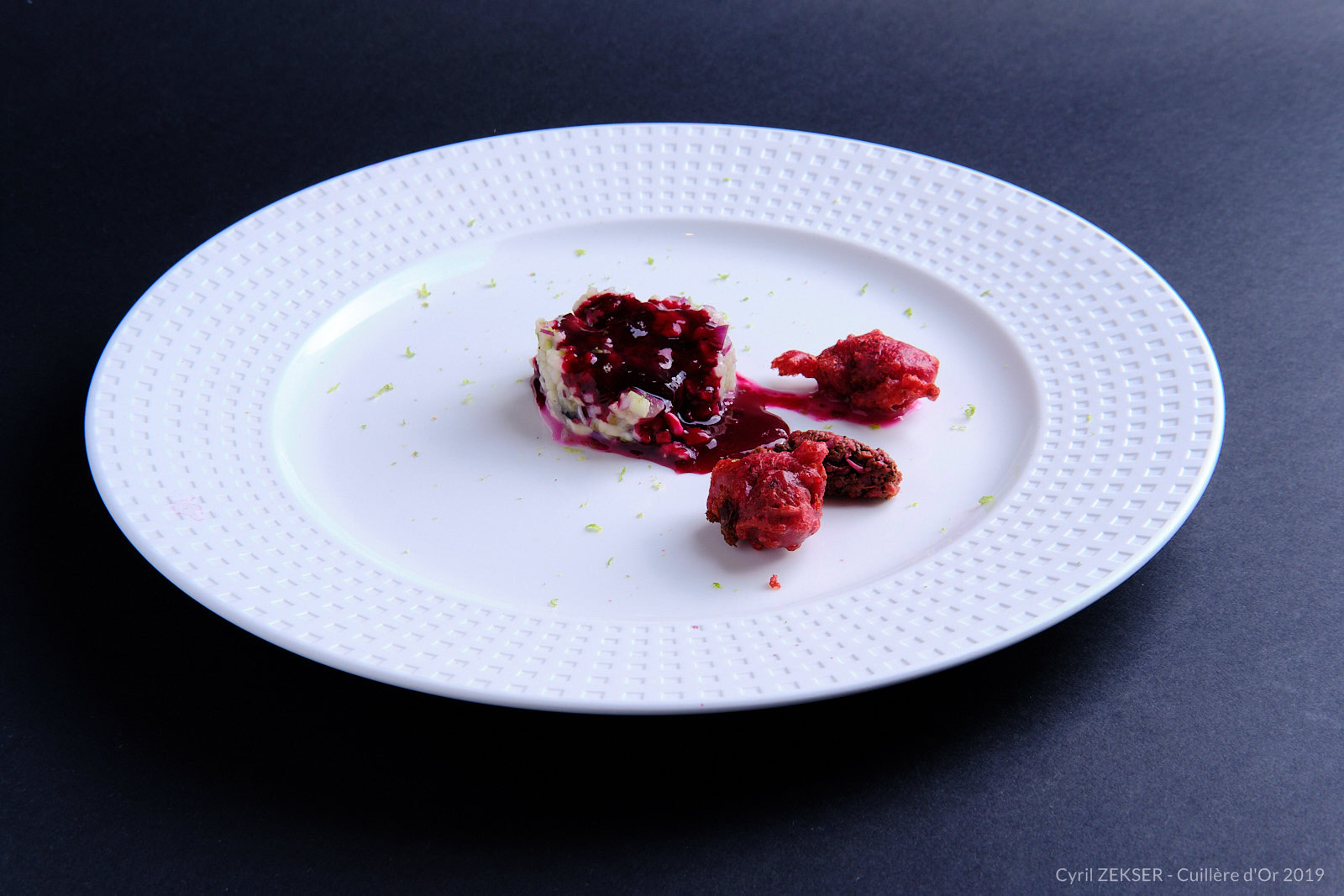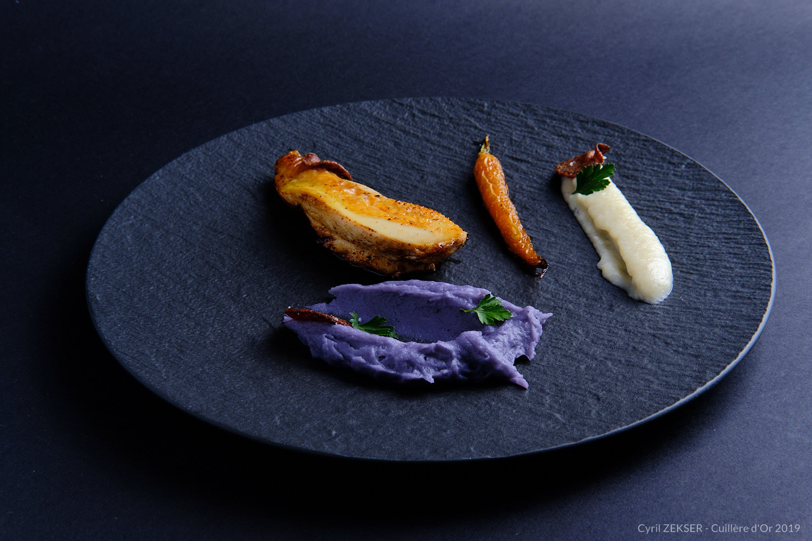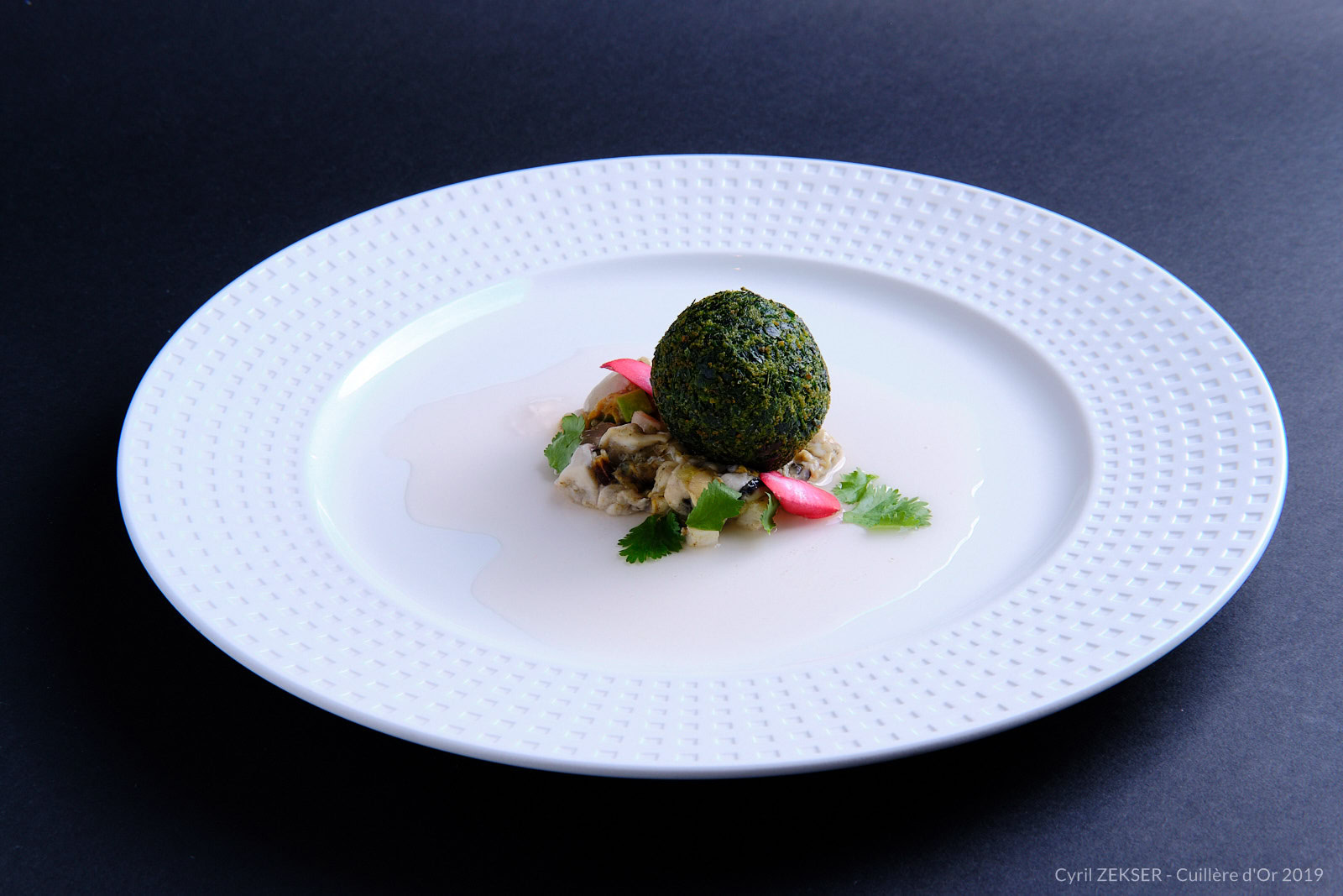 Chaque candidate dispose de 3h00 pour réaliser un plat identique dressés sur assiettes pour 7 personnes, sur le thème « INFINIMENT MER ».